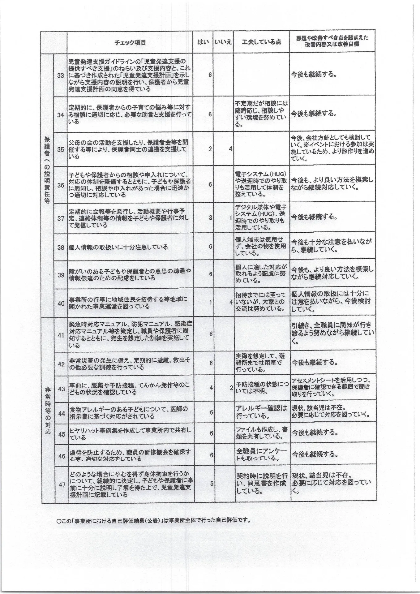 児童発達支援事業所における自己評価結果②